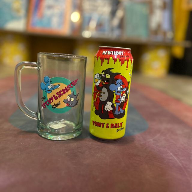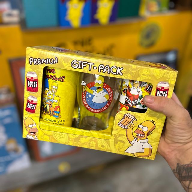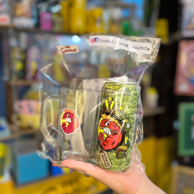 2 Latitas random simpsoneras con cerveza artesanal, Vaso Pinta y una cajita que lo dice todo